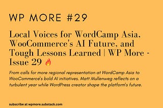 Local Voices for WordCamp Asia, WooCommerce's AI Future, and Tough Lessons Learned | WP More - Issue 29